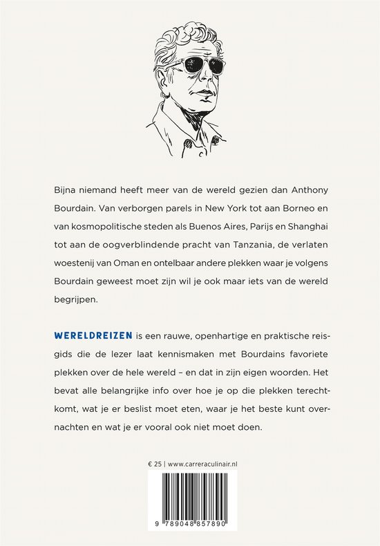 Wereldreizen is een rauwe, openhartige en praktische reisgids die de lezer laat kennismaken met Bourdains favoriete plekken over de hele wereld - en dat in zijn eigen woorden. Het bevat alle belangrijke info over hoe je op die plekken terechtkomt, wat je er moet eten, waar je het beste kunt overnachten en wat je er vooral ook niet moet doen.
