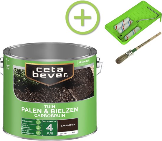 CetaBever - CetaBever - Pakket - Tuin Palen & Bielzen Beits - Mat - Carbobruin - 2.5 Liter + Beitsset