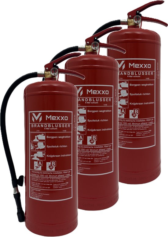 Schuimblusser 6 liter van Mexxo - Inclusief keuringssticker en bevestigingsbeugel - 3 stuks - Voldoet aan de wettelijke eisen