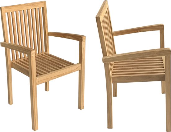 Teakea - Tuinset Twee Teak Pile Stapelbare Stoelen met Klaptafel Ø60 cm - Compacte Bistroset
