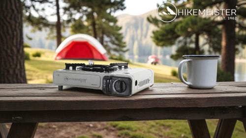 Hikemeister ® camping kooktoestel 1 pit 2200 KW draagbaar - Grijs – Inclusief 4 gasbussen - met Nederlandse beschrijving en CE – Butaangas Gasstel Gasfornuis Gaspit - Campingkooktoestel Gas Kookplaat - Met Koffer