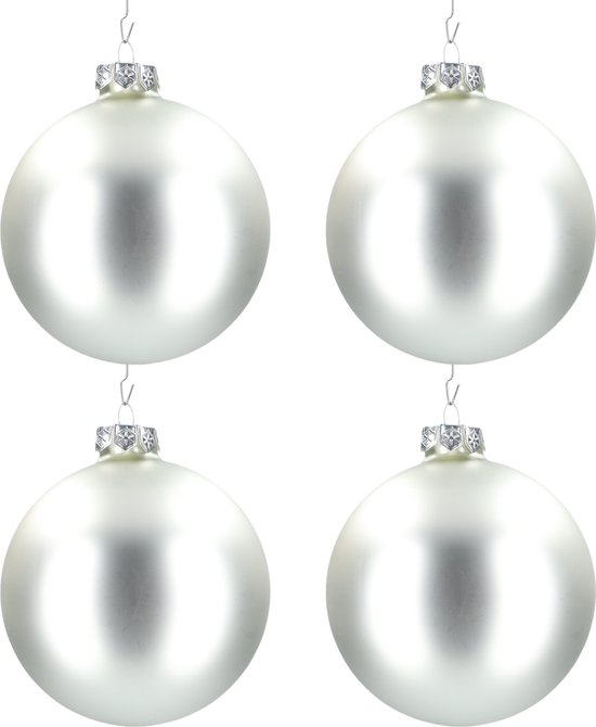 Glazen kerstballen - Set van 4stuks/100mm - Luxe kerst decoratie - Sfeervolle kerstversiering voor in de kerstboom - Glas - Matte Silver - Mat Zilver