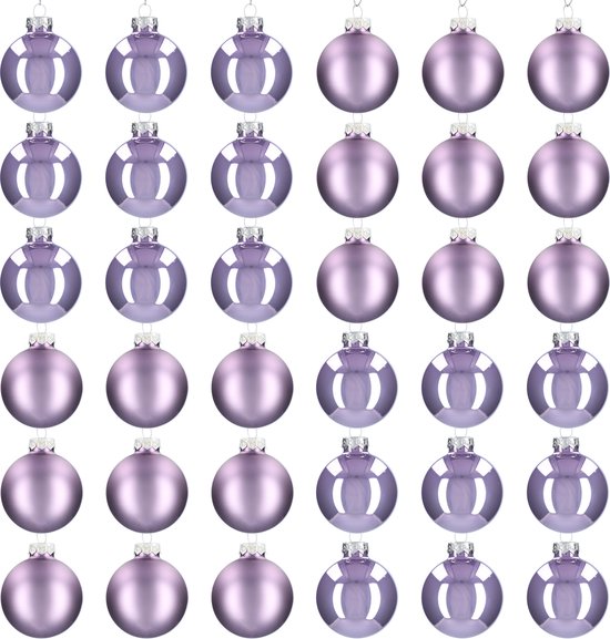 Glazen kerstballen - Set van 36 stuks/60mm - Luxe kerst decoratie - Sfeervolle kerstversiering voor in de kerstboom - Glas - Frosted Lilac - Donkerpaars