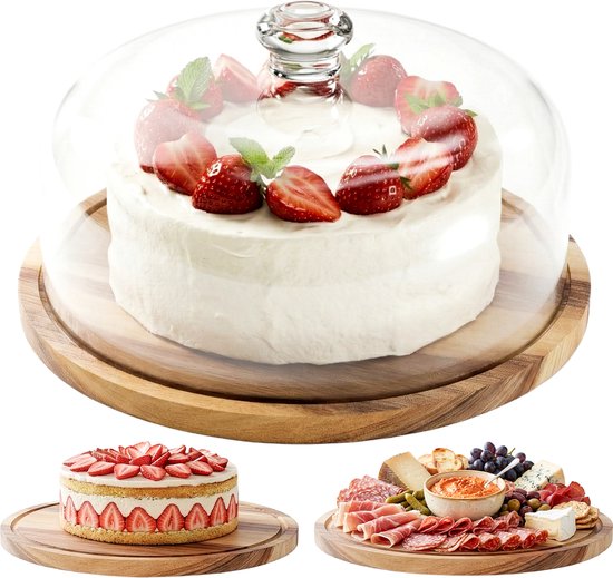 Borrelplank Tapasplank Taartplateau Serveerplank in 1 - Kaasplank Taartstolp Kaasstolp Hout Taartschaal Hapjesplank met Deksel en Stolp - Taart