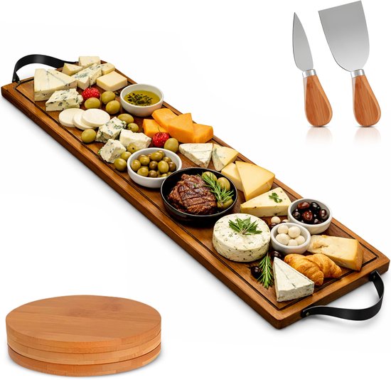 Villux Tapasplank - Borrelplank - Serveerplank - Kaasplank - Hapjesplank - Inclusief Kaasmesjes - Inclusief Onderzetters - Taspasplank Acaciahout- Tapas Servies - Inclusief Ebook - 70 cm