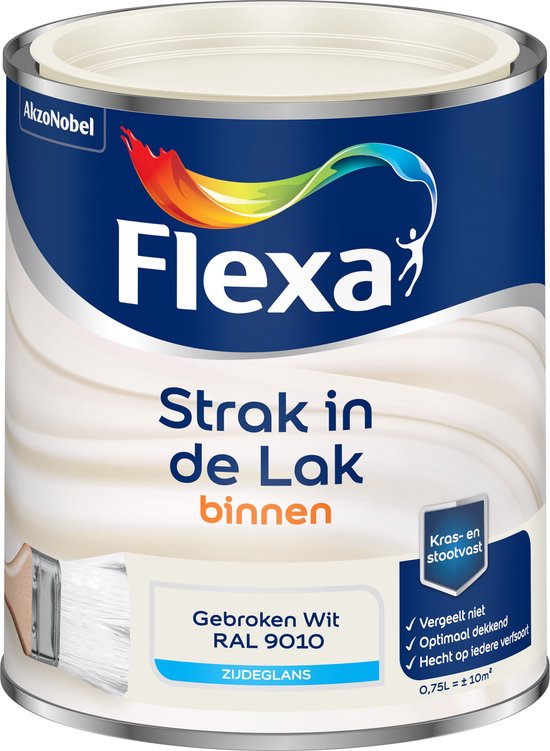 Flexa - Strak in de Lak Binnenlak Zijdeglans - Gebroken wit / RAL 9010 - 0.75 L