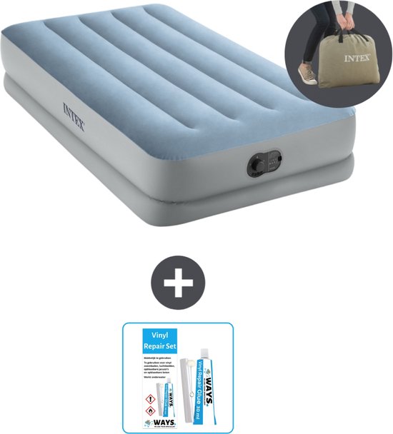 Intex Luchtbed - 1-Persoons - 99 x 191 x 36 cm - Blauw/Grijs - Inclusief pomp - Reparatieset