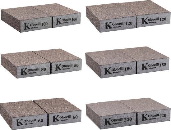 Somstyle Schuurpapier Set - 12 Stuks - Korrel P60 / P80 / P100 / P120 / P180 / P220 - Schuurblok - Handschuurblok - Schuurspons - Zwart / Grijs