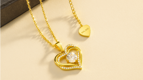 Malinsi® Ketting Dames Dubbel Hart - Gold Plated RVS - Kettingen met hanger - Cadeau vrouw