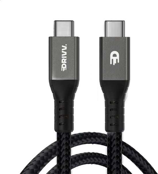 Drivv USB C naar USB C Kabel 3.2 - 100W Snellader - 4K 60Hz - 20Gbps - 3 Meter - Nylon - Grijs