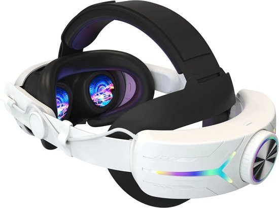 JustValue Elite Strap met VR Cover en 8000mAh Batterij - Vervanging Geschikt voor Oculus Quest 3 en Meta Quest 3 en 3s - RGB Verstelbare Comfortabele Riem met Hoofdkussen - Wit