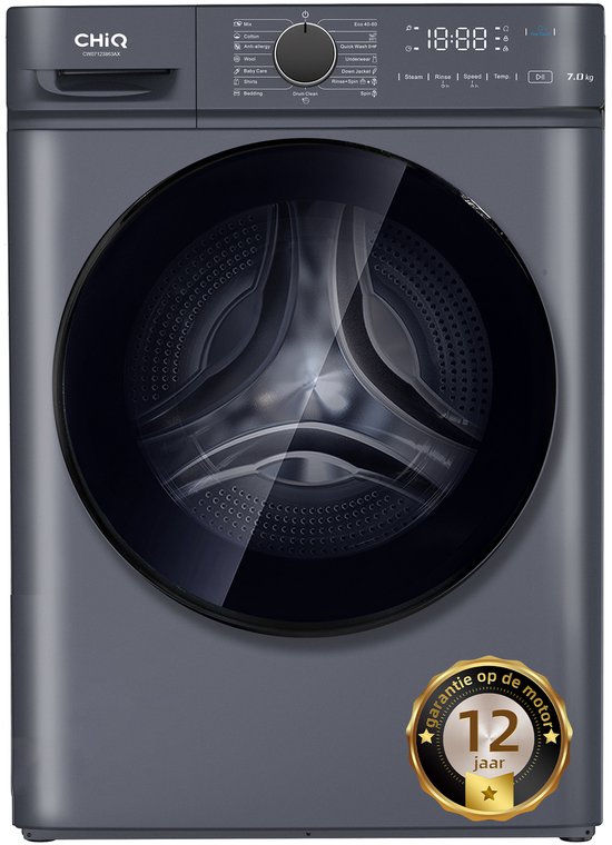CHiQ CW07123863AX - Wasmachine - 7 KG - Space Pro - 16 programma's - AI Smart - Stoomwassen & Quick Wash - 12 jaar garantie op motor - Energieklasse A - 2025 Nieuw