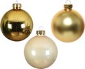 18x stuks glazen kerstballen goud en champagne 8 cm. 6x stuks champagne kerstballen met een glanzende afwerking en 12x stuks gouden kerstballen met een mix van matte en glanzende afwerking. Kerst versiering/decoratie voor het optuigen van uw kerstboom. Wij adviseren u om onze kerstbalhaakjes mee te bestellen (niet inbegrepen). Materiaal: glas. Formaat diameter: 8 cm. Let op! 1 kerstbal uit dit pakket ontvangt u reeds gratis om eventuele transport schade te dekken.