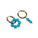 ∅19mm Oorringen Dames - Natuurlijke Kattenoog Steen Turquoise - Verguld RVS - Oorbellen met Kralen Hangers