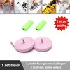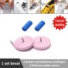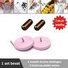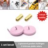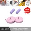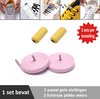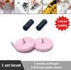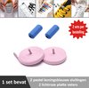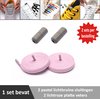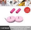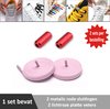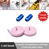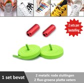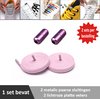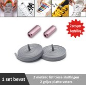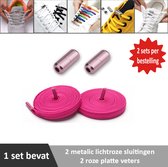 2 paar lichtroze platte elastische veters met metalic rode sluitingen. Je hoeft voortaan nooit meer je veters te strikken.