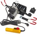 Met een eigen gewicht van slechts 11 kg heft deze kleine en lichte bandlier zelfs 100 kg tot een hoogte van 3m. De elektrische fietslift is zeer eenvoudig aan het plafond te monteren met behulp van een papieren mal met de boorgaten. Het apparaat heeft een bedraadde afstandsbediening van ong. 3 mtr met noodstop voor de elektrische ingang en uitgang van de riem. De bovenste eindschakelaar voorkomt dat het band volledig wordt ingetrokken. De lier schakelt dan automatisch uit. De automatische rem en de thermische overbelasting beveiliging garanderen een veilige werking. De rubberen bevestigingshaken beschermen tegen krassen op de fiets of de andere producten.