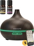 2BEHOME Aroma Diffuser met 2 Etherische Oliën & Afstandsbediening - 550ML - Aroma Diffuser Luchtbevochtiger - Etherische olie diffuser - Essentiele olie Aromadiffusers - Geurverspreider voor Aromatherapie - Donkere Houtlook