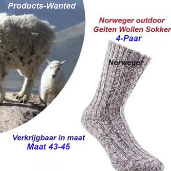 Highlights * 4-paar Norweger de orginele geitenwollen sokken * Grof gebreide wollen sokken * Uitstekend voor het buitenwerk en klompen dragers * klassieke grijs gemêleerde kleur * Sterke kwaliteit * Ultiem draagcomfort * Lekker warme sokken * Houd je voeten lekker warm * Pure verwennerij voor de voeten * De ideale wintersokken * Voor dames en heren * Tevens perfect te gebruiken als vervanging van pantoffels of sloffen * Geen koude voeten meer * Ideaal tijdens een koude winterdag, op wintersport of gewoon voor dagelijks gebruik * 50% wol 25% acryl 25% polyamide * Wasbaar op 30 graden * Verkrijgbaar in maat 43/45 4-paar Norweger de orginele geitenwollen sokken- Maat 43/45 , Merk Orginele Norweger, klassieke grijs gemêleerde kleur Met deze Norweger sokken ben je verzekerd van heerlijke warme voeten. Of je nu buiten de tuin aan het doen bent, een winterwandeling maakt of aan het schaatsen bent, jij krijgt met deze sokken geen koude voeten meer. Maar ook thuis op de bank of voor de haard zijn deze sokken ideaal. Tevens perfect te gebruiken als vervanging van pantoffels of sloffen. De sokken zijn van uitstekende kwaliteit, dus zeer geschikt voor intensief gebruik. De sokken zijn gemaakt van wasbare wol voor uitstekende warmte en heerlijke zachtheid. Materiaal: 50% wol 25% acryl 25% polyamide, Merk Norweger