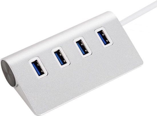 Aluminium USB 3.0 hub met 4 USB-A poorten - zilver