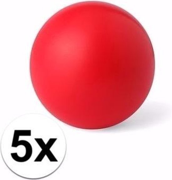 5x anti stressballen in de kleur rood, type Relaxman. Diameter: 6 cm. Gewicht: ongeveer 17 gram. Ronde ontspannen en relaxen artikelen. Mindfullnes artikelen. Voor kinderen en volwassenen. Gemaakt van polyester.