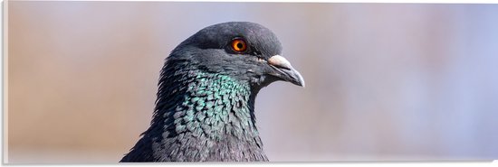 Acrylglas - Kop van Opzijkijkende Stadsduif - 60x20 cm Foto op Acrylglas (Met Ophangsysteem)