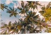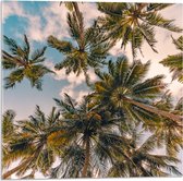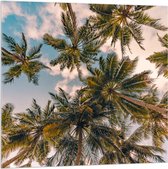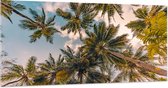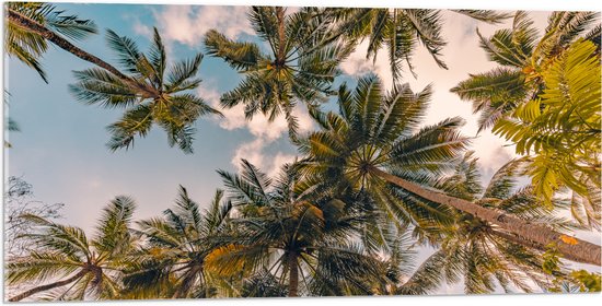 Acrylglas - Onderaanzicht van Tropische Palmbomen onder Wolkenveld - 100x50 cm Foto op Acrylglas (Met Ophangsysteem)