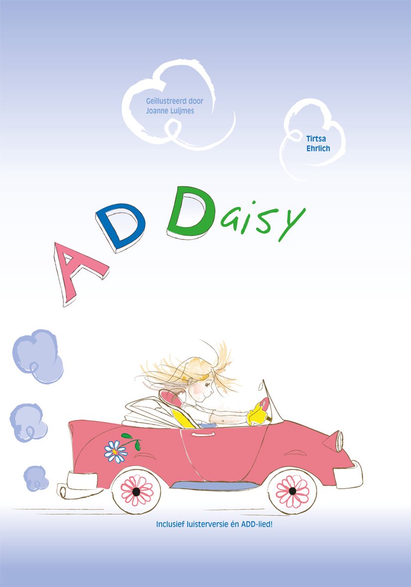 ADDaisy is een voorlichtingsverhaal voor kinderen in de basisschoolleeftijd. Voor kinderen met en zonder de diagnose maakt het duidelijk wat ADD is zodat meer begrip kan ontstaan. Op de cd achter in het boek wordt het verhaal voorgelezen en is het ADD-lied te beluisteren.