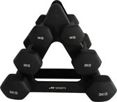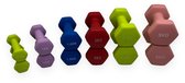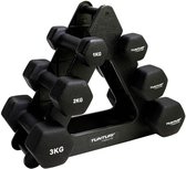 - Gewicht: 2 x 0,5 kg, 2 x 1 kg, 2 x 2 kg, 2 x 3 kg, 2 x 4 kg en 2 x 5 kg.