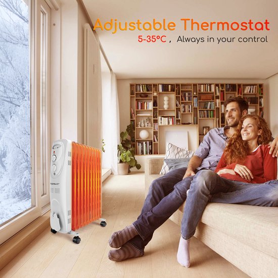 Kies een van de instelbare standen en draai de thermostaat om de kamer te verwarmen. Het duurt even voordat de olie geheel op temperatuur is, maar eenmaal op temperatuur blijft de radiator nog lang warm.