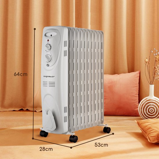 Aigostar Pangpang 33IEJ – Olieradiator - Elektrische kachel - 2300W Heater - Timer - 3 Standen - Oliegevulde radiator - Wit