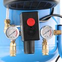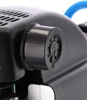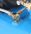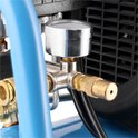 Met het reduceerventiel, te herkennen aan de zwarte draaiknop, stel je snel en eenvoudig de gewenste inschakeldruk in die je kunt aflezen op de manometer aan de linkerkant van de drukschakelaar.