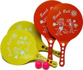 De set is ontworpen voor optimale prestaties en comfort tijdens het spelen. Het houten materiaal zorgt voor een stevige grip en een klassieke uitstraling op het strand.