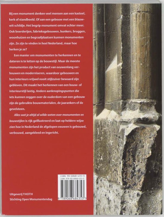 Hoe in Nederland gebouwd werd gedurende een aantal eeuwen en hoe zo'n gebouw werd aangekleed en ingericht, kun je lezen in dit boek. Het helpt je op weg om erachter te komen wat je altijd al wilde weten over monumenten en bouwstijlen.