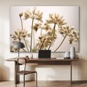 Aluminium schilderij 150x100 cm - Wanddecoratie metaal - Droogbloemen - Beige - Wit - Planten - Metalen muurdecoratie woonkamer - Decoratie industrieel - Foto op dibond - Industriële accessoires slaapkamer