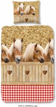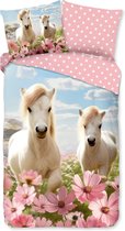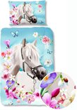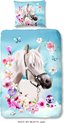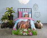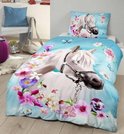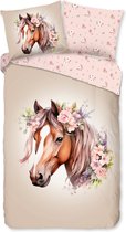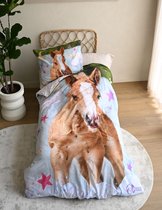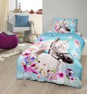 De set bestaat uit 1 kinderdekbedovertrek in de maat 140x220 cm inclusief ��n kussensloop van 60x70 cm met hotelsluiting. Het kinderdekbedovertrek is voorzien van een dubbele doorlopende instopstrook van 20 cm, waardoor de totale lengte circa 240 cm bedraagt. Hierdoor is het kinderdekbedovertrek geschikt voor dekbedden met een lengte van 200 tot 220 cm.