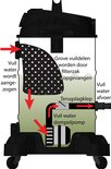 Dit maakt het zeer eenvoudig en betaalbaar om met zelf te bepalen lengtes afvoerslang te werken! Dankzij de 1200 watt sterke zuigturbine kan tot 2,5 meter diepte worden aangezogen. De dompelpomp heeft aparte stekker zodat de zuiger ook alleen voor droogzuigen kan worden gebruikt zonder het water weer af te voeren.