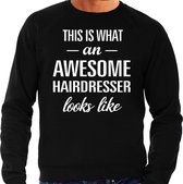 Awesome barber - geweldige barbier cadeau sweater zwart heren. Op deze zwarte trui staat groot de tekst: This is what an awesome barber looks like.
