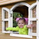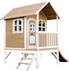 Kinderen vinden het heerlijk om met vriendjes of vriendinnetjes in het houten Tom Speelhuis Bruin/wit van AXI te spelen. Klimmen op de trap, over de veranda en snel weer naar beneden van de glijbaan. Hoe vaker ze naar beneden glijden, hoe leuker ze het vinden! In dit speelhuis kunnen ze elkaar de mooiste geheimen vertellen. Zodra ze de ramen en deur dicht doen, kan niemand ze meer afluisteren! Tom is een veelzijdig houten speelhuis met een halfronde deur en ramen. De deur heeft een brievenbus waar kinderen post doorheen kunnen gooien als ze postbodetje spelen. Het speelhuisje is uitgevoerd in moderne bruin/witte kleuren welke perfect in iedere hedendaagse tuin passen. Tom speelhuis heeft een platformhoogte van 58 cm en is uitgevoerd met een kleine glijbaan van 118 cm lang. Het trapje en glijbaan kunnen zowel links als rechts aan het speelhuis worden bevestigd.