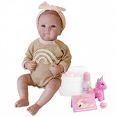 De Levensechte Baby wiebelt en giechelt als je haar kietelt. De baby brabbelt graag en als je tegen haar praat, kijkt ze naar je. Houd de hand van de babypop tegen haar mond en help haar handkusjes te geven. Wat een lieverd.