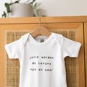 Een leuk, hip rompertje met tekst, die je kunt gebruiken als zwangerschapsaankondiging! Superleuk om cadeau te geven aan opa en oma. Gemaakt van 100% biologisch katoen, maat 50-56.