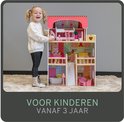 Geschreven bij: Bandits & Angels Houten Poppenhuis Roze Angels Villa vanaf 3 jaar 70 cm hoog - Inclusief 15 meubeltjes - Poppen Huis - Poppen Speelgoed
