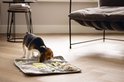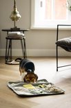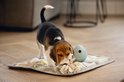 Dit speelkleedje is handig om mee te nemen. Niet echt puppyproof en we moeten het kleedje wel vasthouden anders wordt het verscheurd door onze teckelpup. Samen wel een leuk spel, het prikkelt onze pup op een leuke manier. Hij wordt hier wel vindingrijk door.