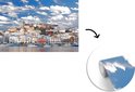 Het nog rustige Ibiza-stad en de kenmerkende witte gebouwen op een heldere en lichtbewolkte ochtend. Deze afbeelding is een mooie aanvulling op het interieur van de woonkamer.