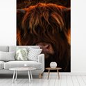 Fotobehang - Schotse Hooglander - Koe - Zwart - Portret - Woonkamer - Slaapkamer - Kinderkamer