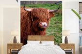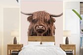 Behang - Fotobehang Schotse Hooglander - Koe - Zwart - Portret - Breedte 195 cm x hoogte 260 cm