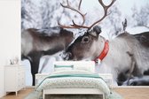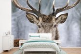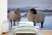 Behang - Fotobehang Stoomlocomotief in de sneeuw - liggend - Breedte 420 cm x hoogte 280 cm
