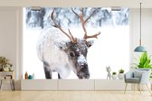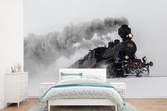 Fotobehang - Stoomlocomotief in de sneeuw - liggend - Woonkamer - Slaapkamer - Kinderkamer