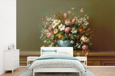 Fotobehang - Vaas - Bloemen - Kleuren - Woonkamer - Slaapkamer - Kinderkamer