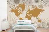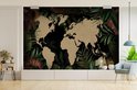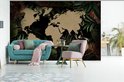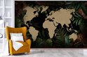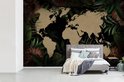 Fotobehang - Wereldkaart - Bladeren - Bloemen - Woonkamer - Slaapkamer - Kinderkamer