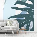 Fotobehang - Zomer - Monstera - Lichtblauw - Woonkamer - Slaapkamer - Kinderkamer